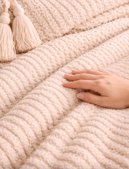Elevate your rest with our soft Bethel Chenille Throw, a versatile piece tailored for king, queen, and twin beds alike. Crafted from premium chenille fabric, this throw combines refined aesthetics with purposeful design—its distinctive texture is engineered to provide gentle tactile stimulation that calms and reduces anxiety. Drape it across yourself or share its generous proportions with a partner for added warmth and comfort. The exceptionally plush weave delivers a cocoon-like embrace, transforming your bedroom into a sanctuary of understated luxury and serene comfort.